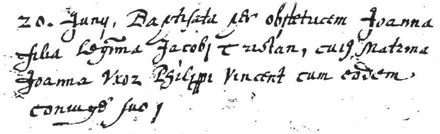 Baptême de Joanna fille de Jacobus TRISTAN Marraine: Joanna, épouse Philippe VINCENT