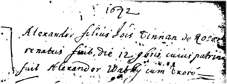 Baptême d'Alexandre TINNAN fils de Joannes TINNAN (et de Catherine de MERGNIER)