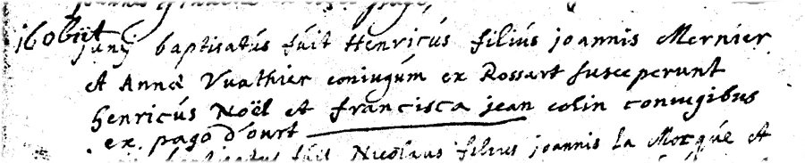 Baptême de Henricus MERNIER fils de Joannes MERNIER et de Anna VUATHIER