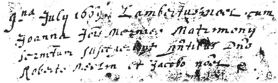 Mariage de Lambert NOEL et de Joanna fille de Joannes MERNIER