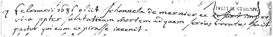 Décès de Johanneta de MERNIER
