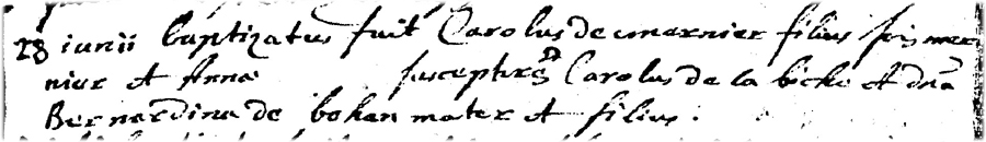 Baptême de Carolus de MERNIER fils de Joannes MERNIER et Anna (NB la place de son nom n'est pas remplie!)