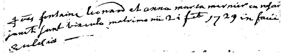 Mariage de Jean Fontaine LEONARD et de Anna Maria MERNIER