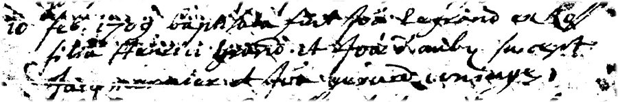 Baptême de Joanna Le GRAND fille de Henricus GRAND et de Joanna d'AUBY Parrain: Jacobus MERNIER Marraine: Joanna GERARD, son épouse