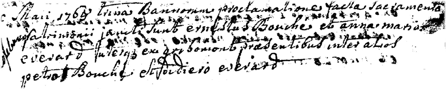 Mariage d'Ernestus BOUCHE (BOUCHET) et d'Anna Maria EVERARD