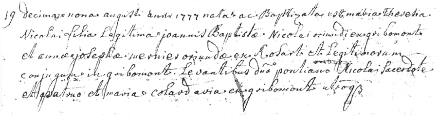 Baptême de Marie Thérèse NICOLAS