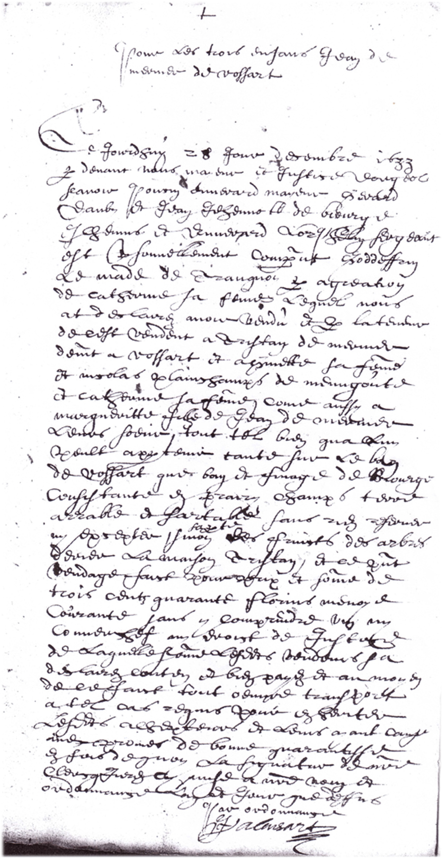 Acte du 28 décembre 1633 d'achat