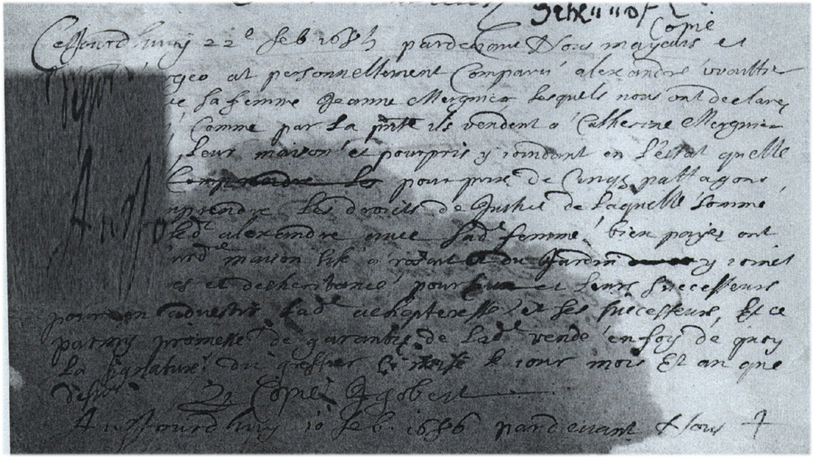 Acte du 22 février 1685 d'achat d'une maison par Catherine MERGNIER à sa nièce