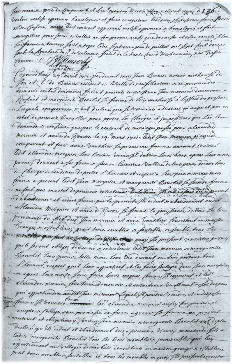 contrat de mariage du 14 mars 1701, le nom de famille était