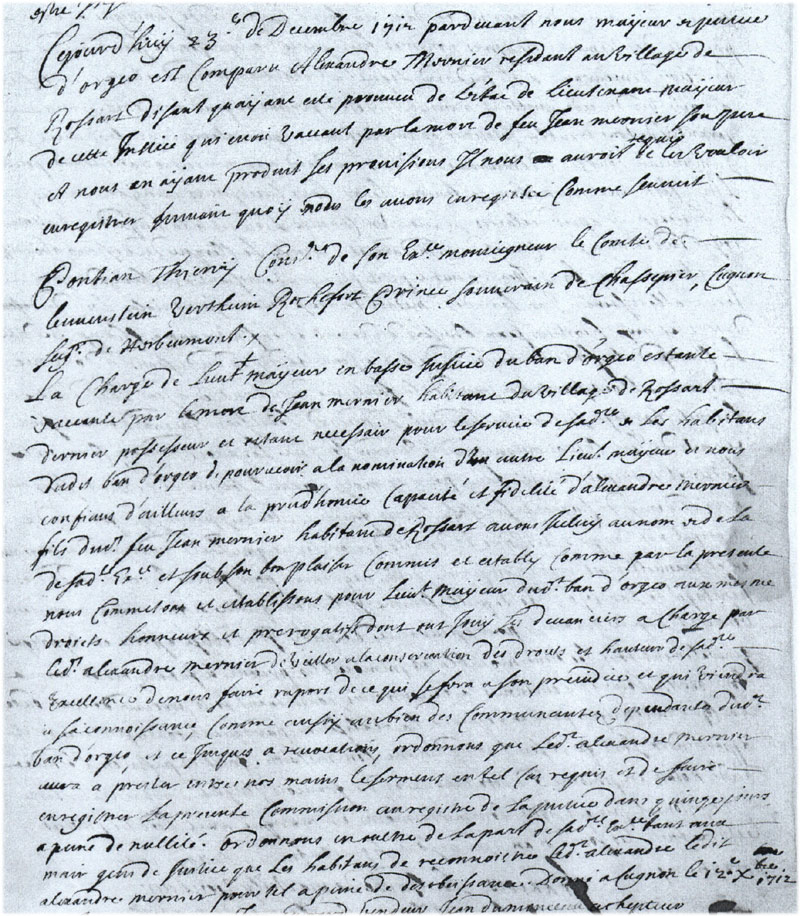 Première signature d'Alexandre Mernier en qualité de Lt-Mayeur sur un acte du 17/12/1712