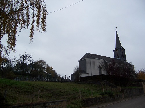 ![]() Eglise St-Raymond : 1712, rebâtie à un autre endroit en 1872 par la commune (A.R. 30.11.1868). La fabrique a placé un maître-autel, deux autels latéraux, une chaire de vérité et un confessionnal (A.R. 15. 9.1872). Les tombes de la famille Henri-Joseph MERNIER (1848-1928), son épouse Marie-Joseph MERNIER et leur fille Clotilde MERNIER