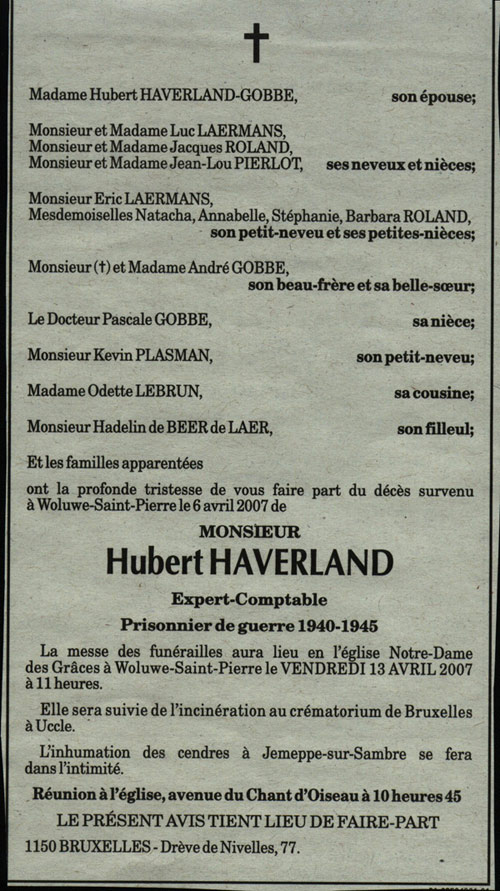 fils de Jean HAVERLAND 1866-1922 et de Gabrielle MERNIER 1882-1971
