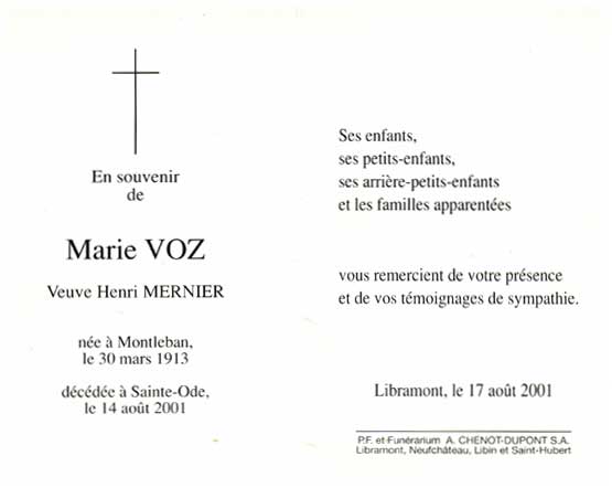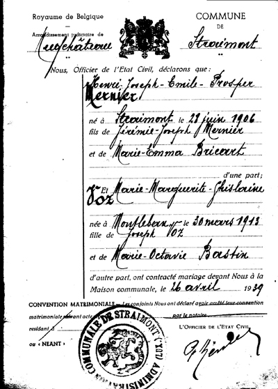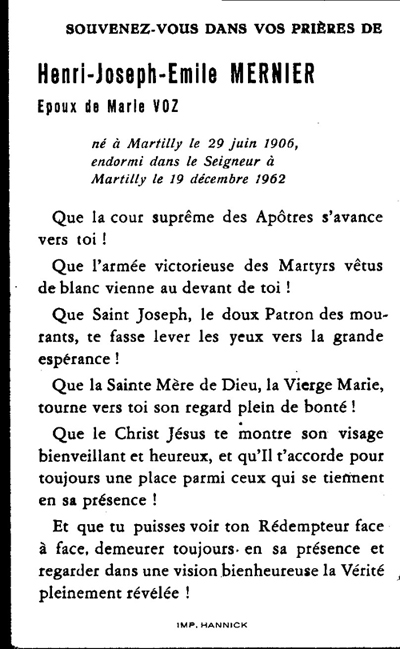Fils de Jérémie MERNIER (1866-1944) et Emma BRICART