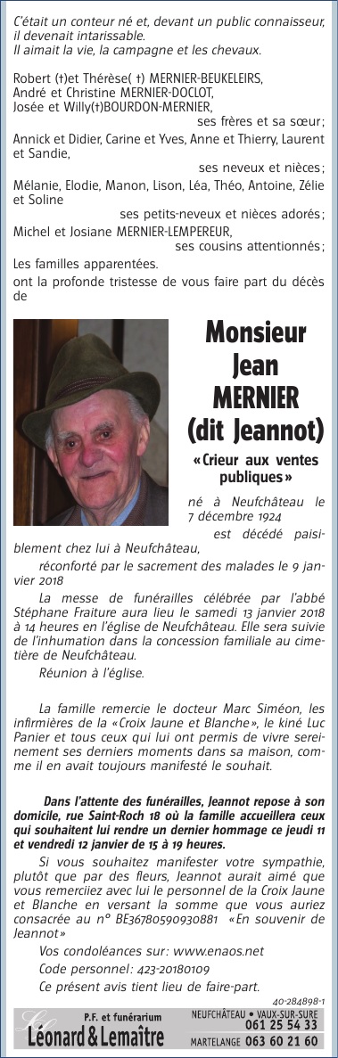 Jean (dit Jeannot) MERNIER (1924-2018)