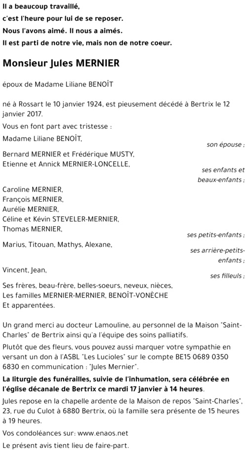 Fils de Ignace MERNIER et de Lucie MERNIER