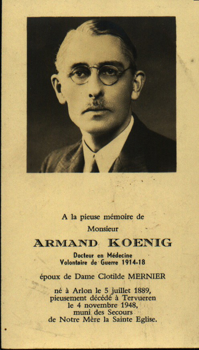 Armand KOENIG 1889-1948 et son épouse Clotilde MERNIER 1893-1971 Fille de : Henri Joseph MERNIER (1848 - 1928) et de Marie-Joseph MERNIER (1856-1931)