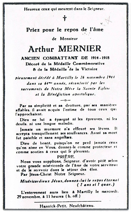 Père : MERNIER Henri-Joseph (1848 - 1928) Mère : MERNIER Marie Joseph (1847 - 1931)