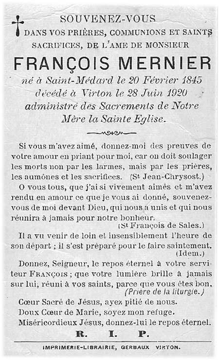 Père : MERNIER Henri Joseph (1812 - 1886) Mère : DELEAU Catherine (1817 - 1879)