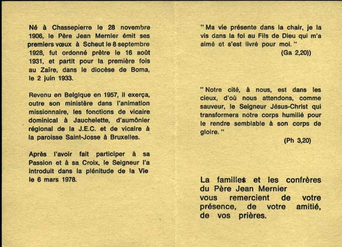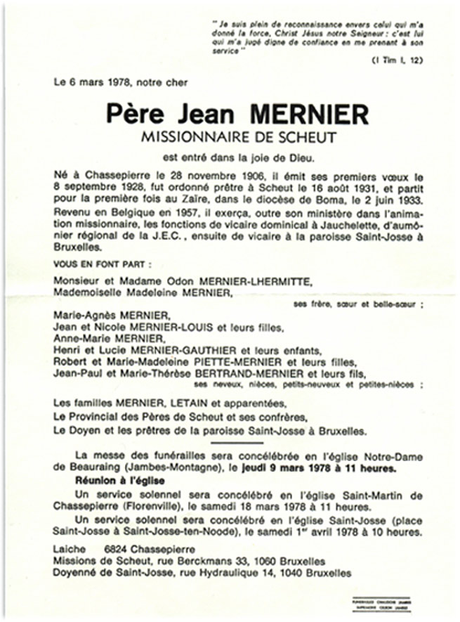 Jean MERNIER 1906-1978 Missionnaire au Congo