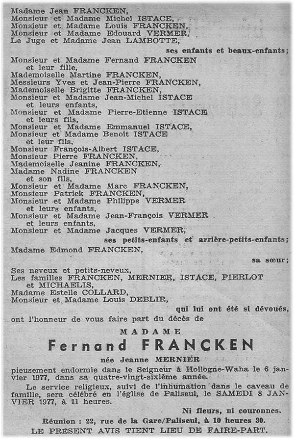 Fille de Alexandre MERNIER (1854-1925) et de Eugénie ISTACE (1864-1945)