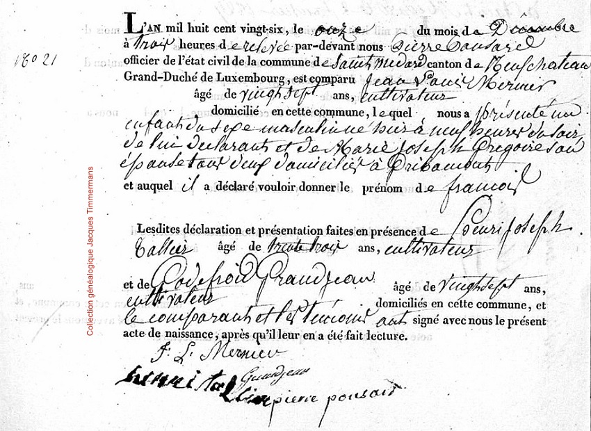 François MERNIER (1826-) fils de Jean-Louis MERNIER (1798-1846) et de Marie-Joseph GREGOIRE (1798- )
