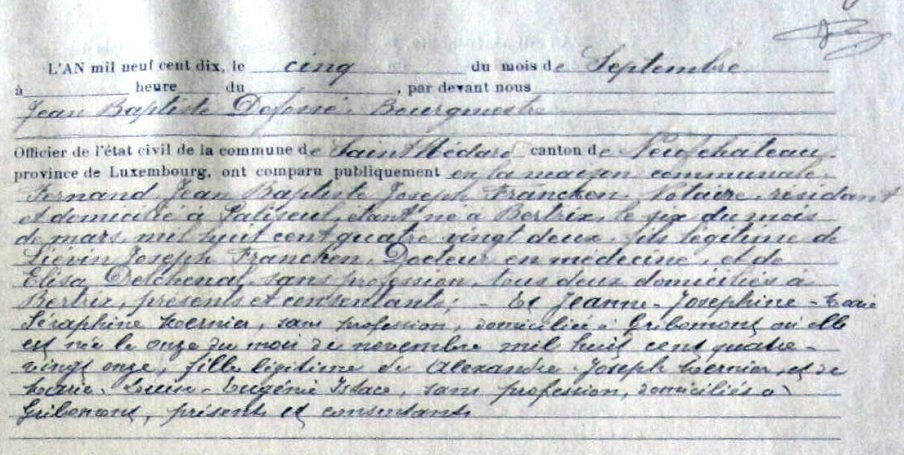 Fernand FRANCKEN (1882 - 1934) notaire à Paliseul
