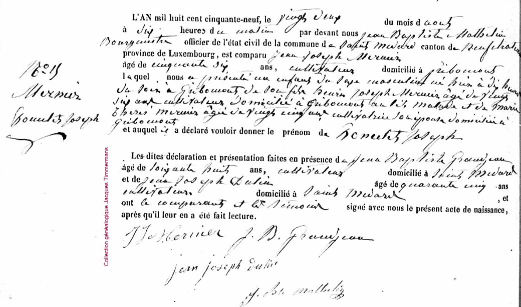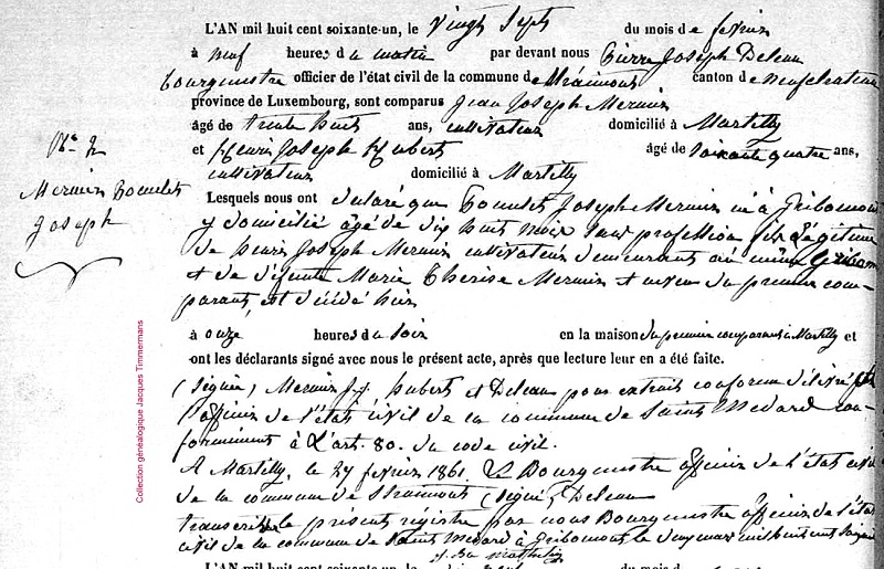 Joseph MERNIER (1859 Gribomont - 1861 Martilly)